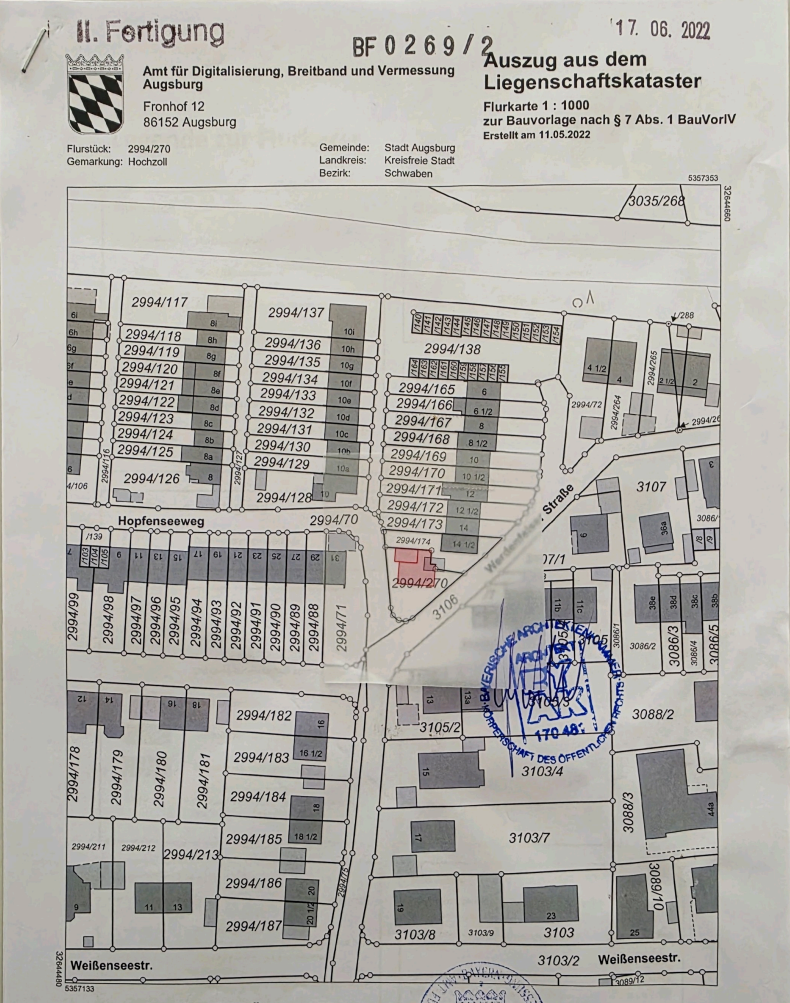 Hopfenseeweg 12, 86163 Augsburg | Flur-Nr. 2994/270 | Gemarkung Hochzoll