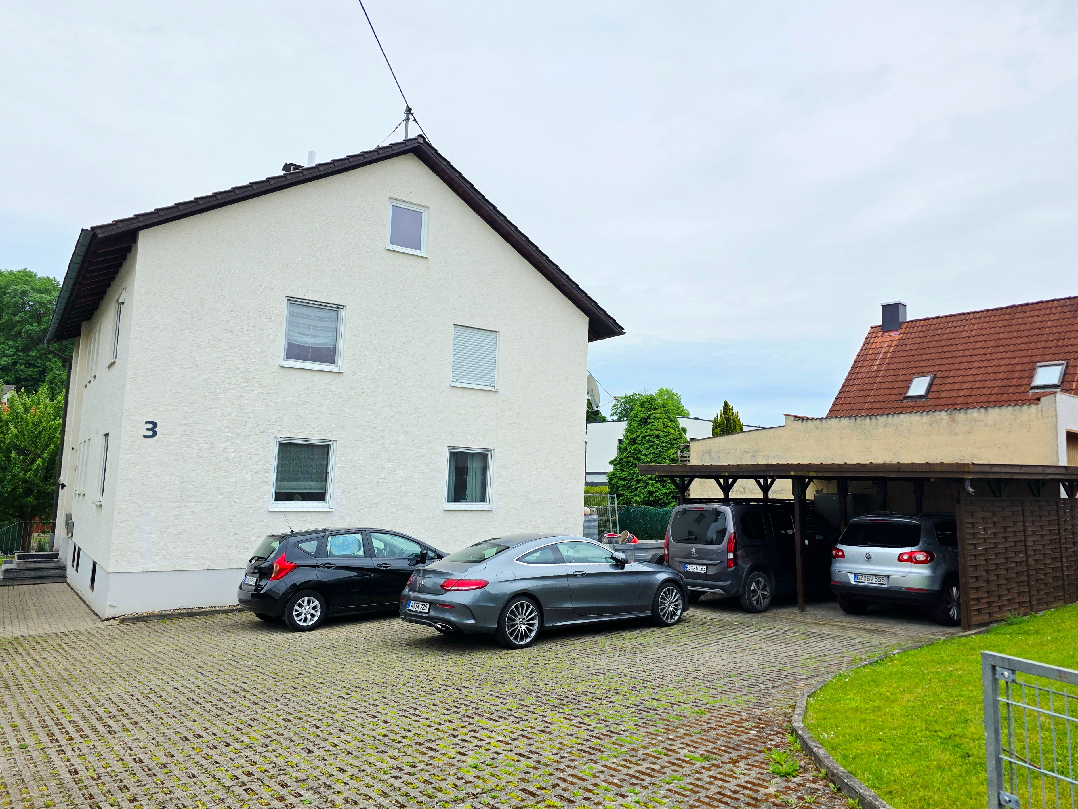 Ein Carport-Stellplatz mit zusätzlichem Vorplatz steht dem Objekt exklusiv zur Verfügung. Weitere Stellmöglichkeiten befinden sich in der breiten Zufahrt und eignen sich für Gäste oder Zweitfahrzeuge.